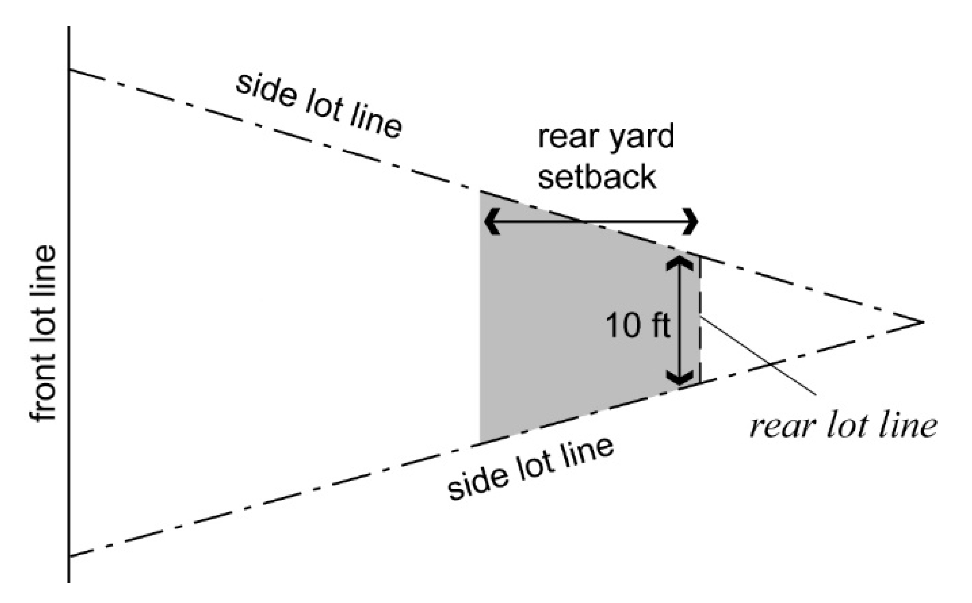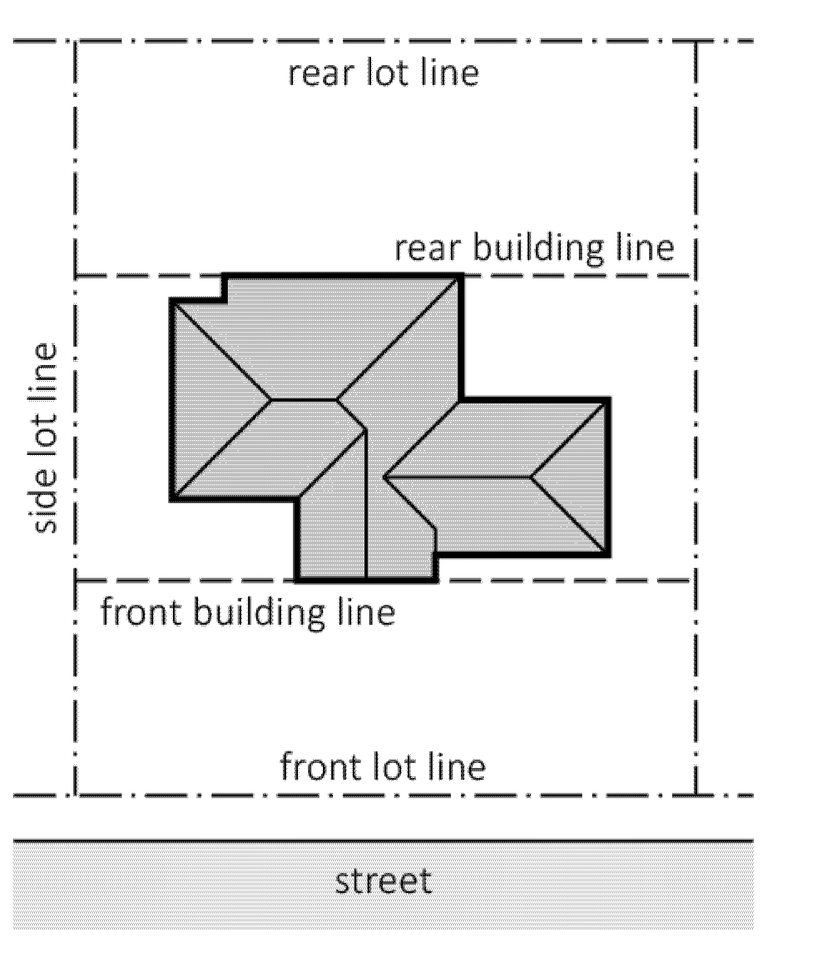 SETBACK: The required minimum distance between a structure and the front, side, or rear lot line.