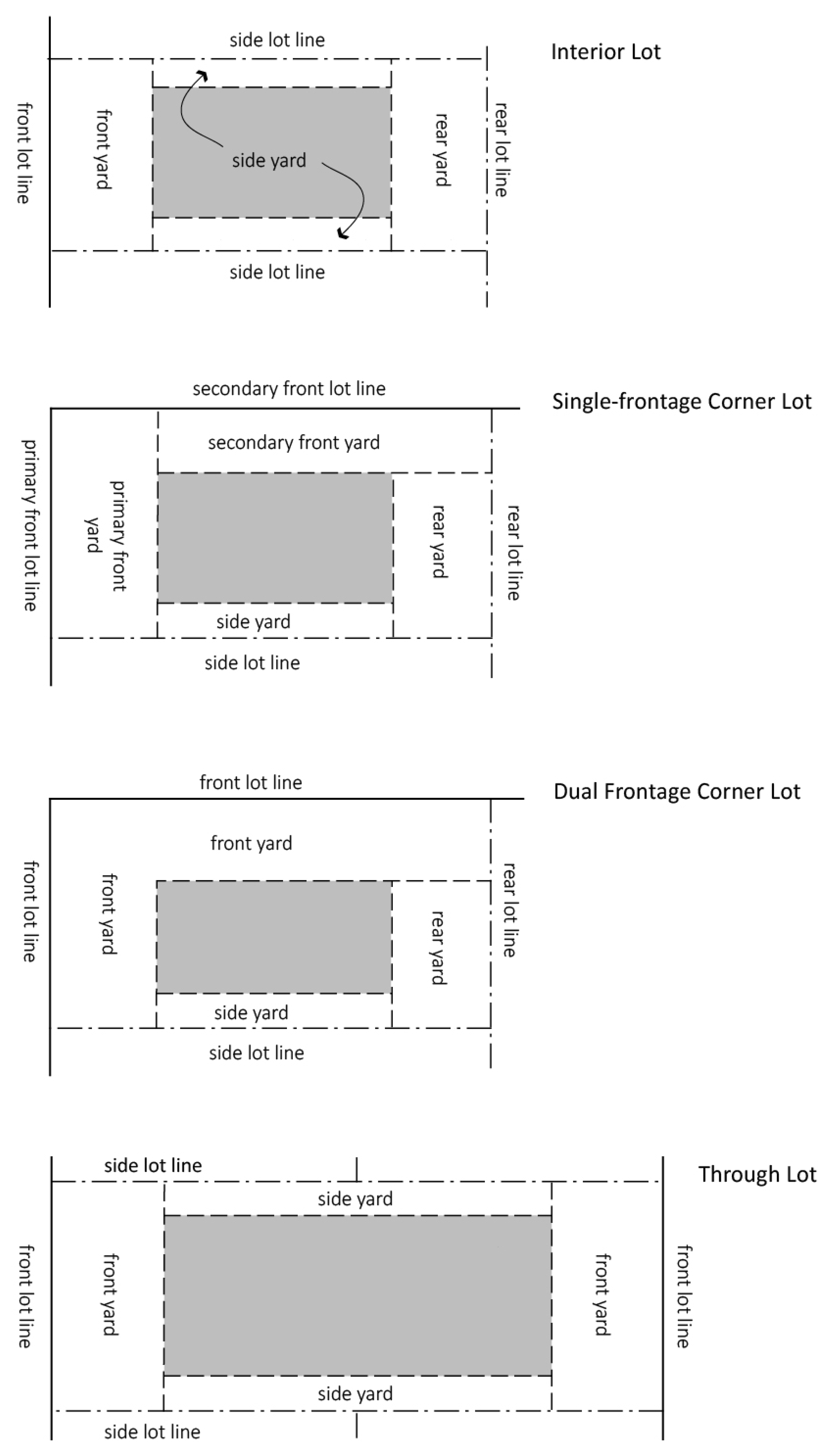 SECONDARY FRONT YARD: A yard of a Single-Frontage Corner Lot along the Side Street Lot Line.