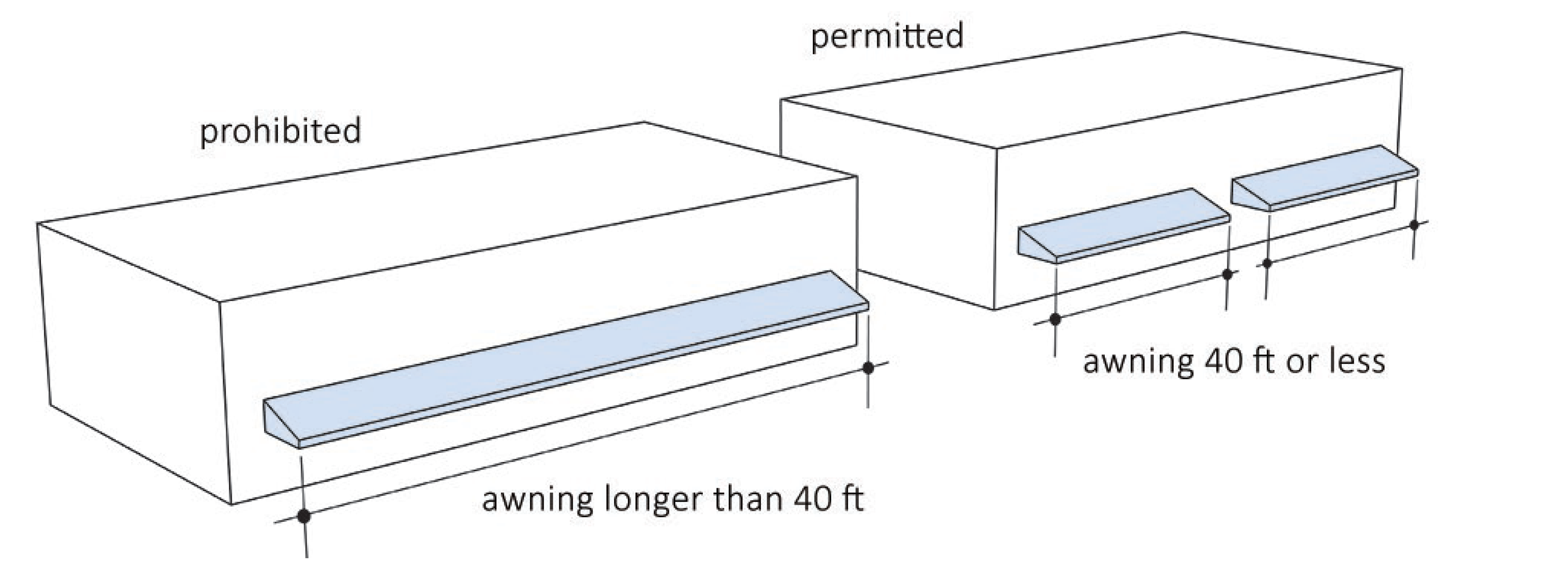Buildings may not exceed a width of 60 feet measured parallel to the street frontage.