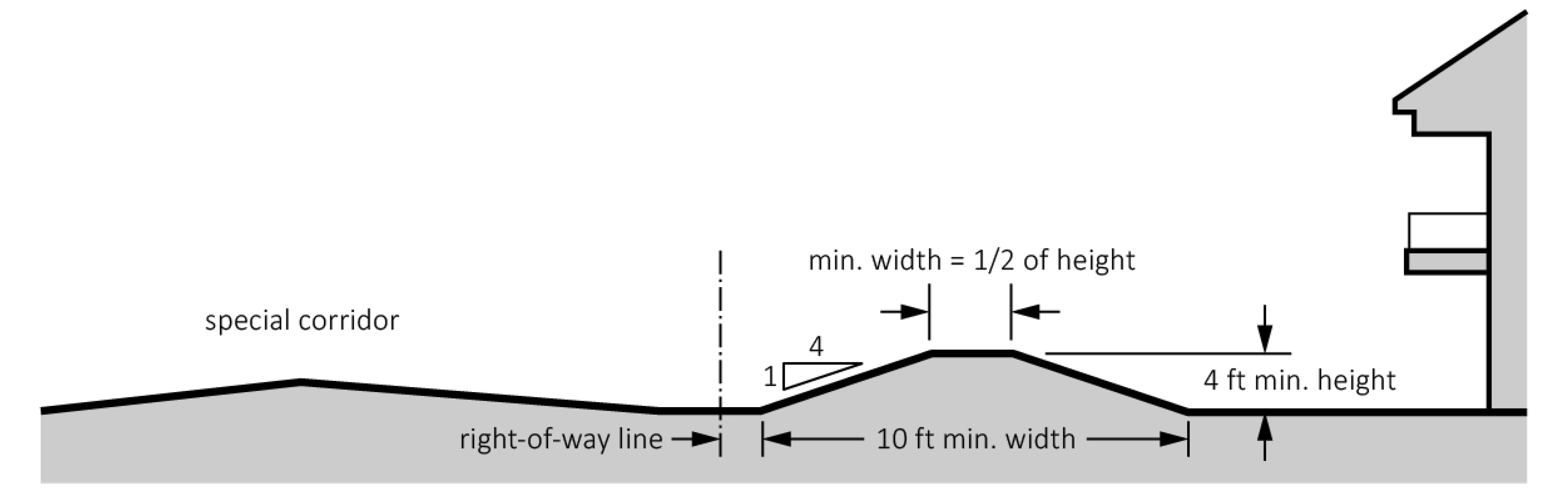 Minimum foundation heights: The finished floor elevation must be at least 24 inches from finished grade at the front building line.