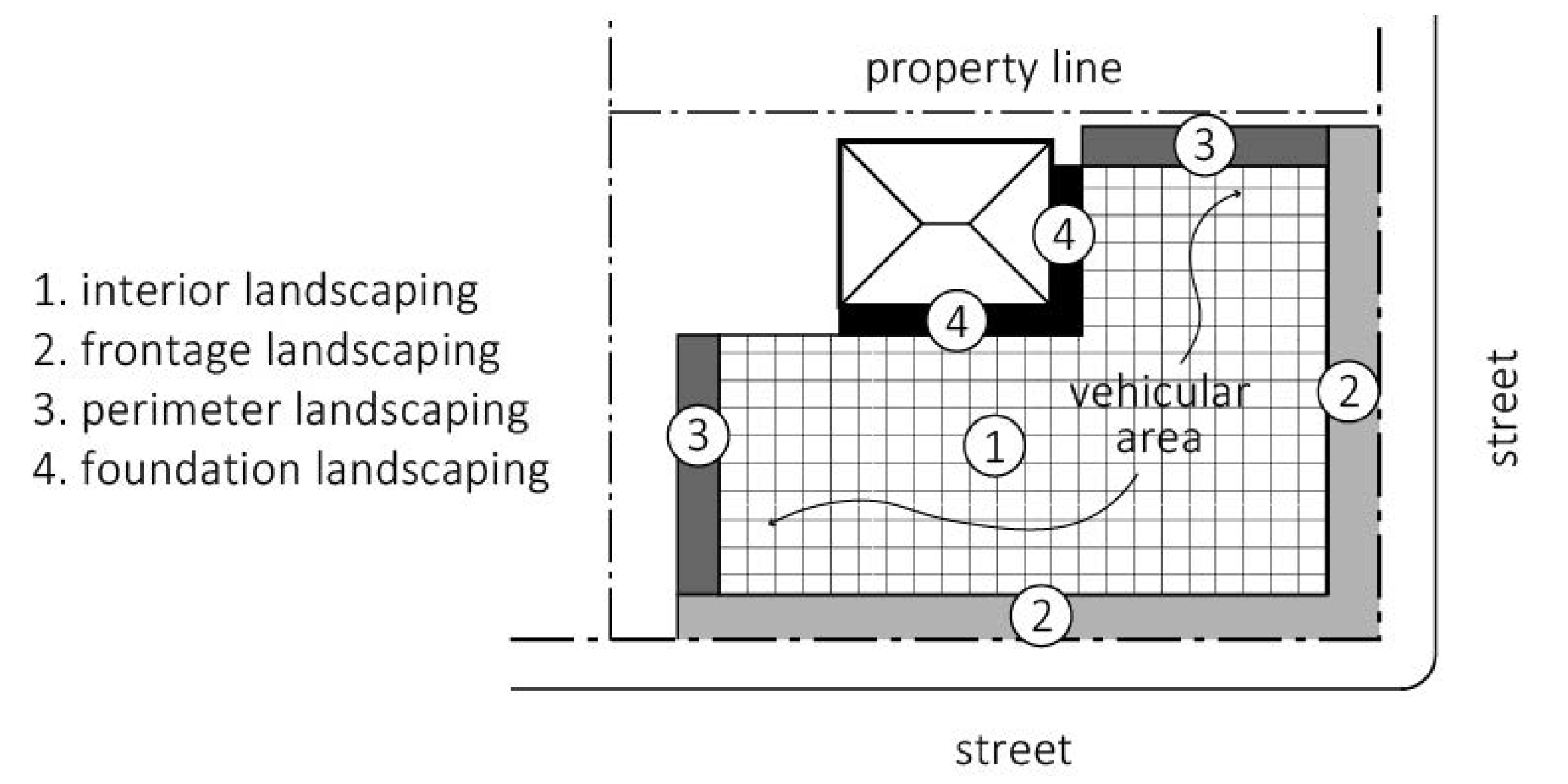 Perimeter landscaping must be provided within the property lines between vehicular areas and adjoining properties.