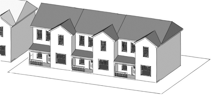 Generally. The townhouse housing type consists of three or more dwelling units located in a single building, in which the individual dwelling units are separated by vertical firewalls. An illustrative townhouse building is shown in Figure 9-3-105A, Illustrative Townhouse Building.