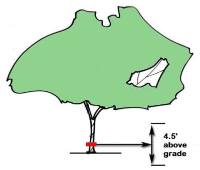 The measurement of the diameter of a tree trunk. Measurement shall be taken 4.5 feet above grade.