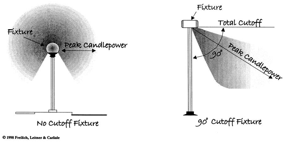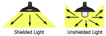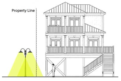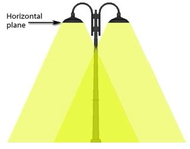 For pole-mounted or wall-mounted fixtures, light that projects above an imaginary horizontal plane through the fixture; for fixtures intended to light a nonresidential building, light that projects above the lowest roofline.