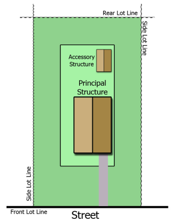 Freestanding accessory structures are defined as any decorative and/or functional structure that is subordinate to, customarily found in association with, and is located on the same lot as a principal use (such as a dwelling unit). Freestanding accessory structures can include trellises, gates and gate posts, basketball goals, solid waste and recycling containers, fences, privacy wall, walls, flagpoles, signs, antennae structures, and other similar items.