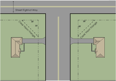 Any privacy fence which is allowed to be constructed on the property line adjoining a public street shall be subject to the provisions of the residential driveway clear vision area in section 314, intersection visibility. If because of the design or construction, one side of the fence has a more finished appearance than the other, the side of the privacy fence with the more finished appearance shall face the street.