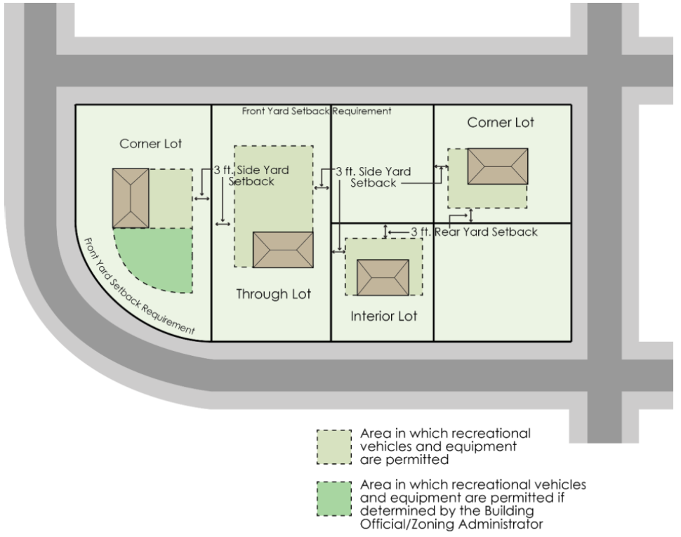 Portable storage containers or moving pods used for a seasonal or temporary use are allowed in the B-2, general business and industrial zoning districts for up to 30 days, once per year. A zoning permit is required with a sketch plan detailing the loading/unloading area and the dedicated parking space to ensure safe vehicular circulation is provided within the site. Extensions can be granted by the zoning administrator upon submitting a written extension request provided a good cause is shown and demonstrated. Extensions may be permitted up to two times, not to exceed 30 days for each time. Portable storage containers or moving pods are permitted with a permit including extensions for a maximum of 90 days per year. The storing or parking of storage containers or moving pods shall be on a paved surface, in the rear or non-required side yards, not visible from a public street; unless otherwise approved by the zoning administrator.