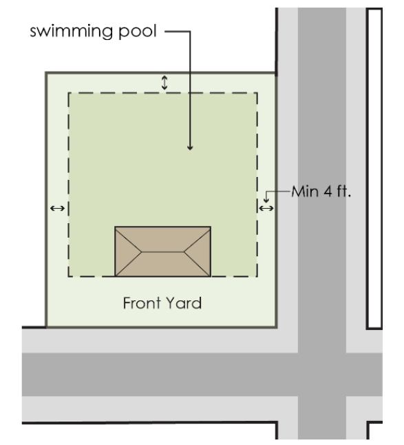 Swimming pools, spas, hot tubs, and similar devices shall not be located in any front yard.