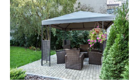 Outdoor patio gazebos made of durable weather-resistance materials are permitted, without a permit, in the rear yards and non-required side yard.