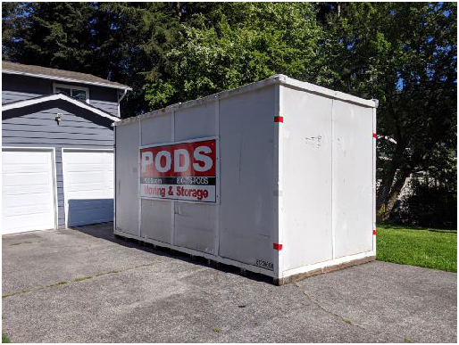 Moving pods are allowed without a permit for up to 30 days. Moving pods must be placed upon a hard surface such as a driveway. Moving pods are prohibited in the right-of-way.
