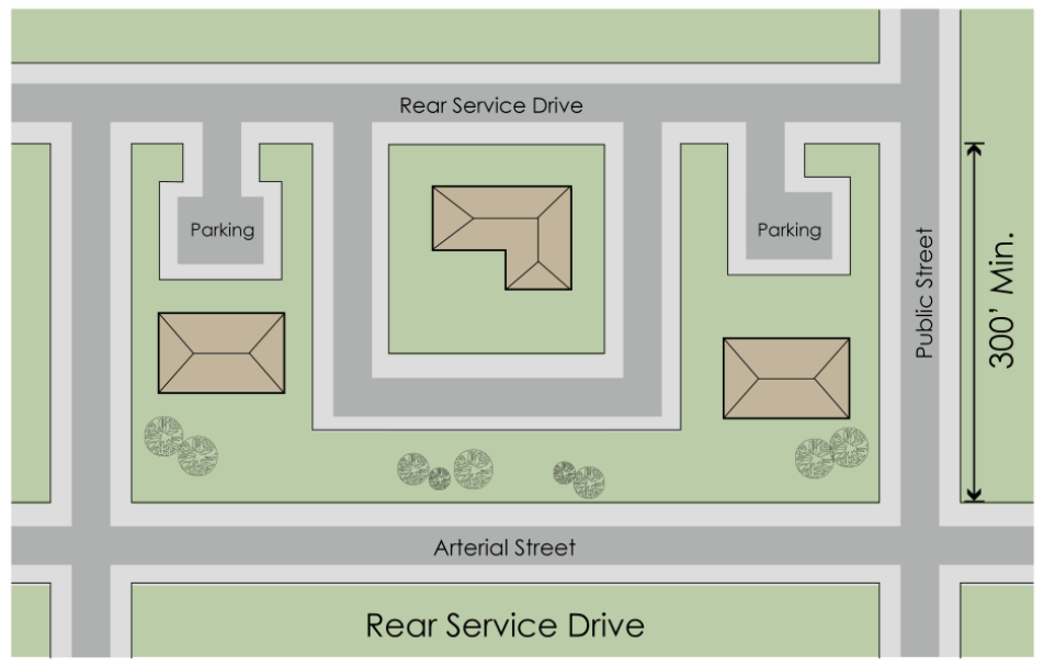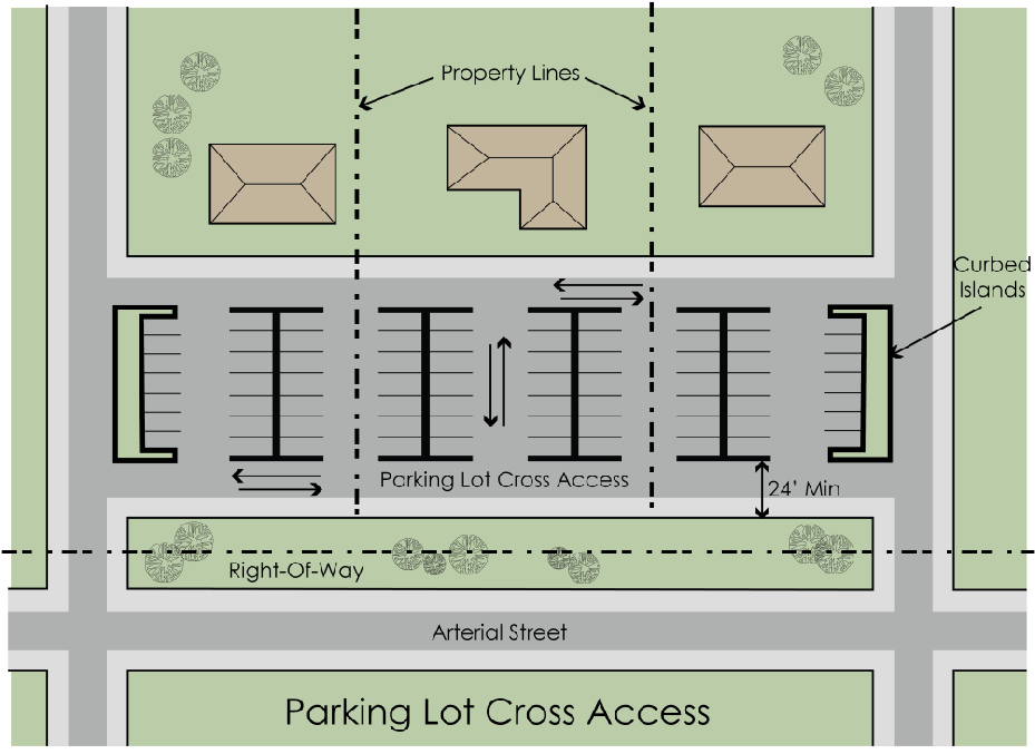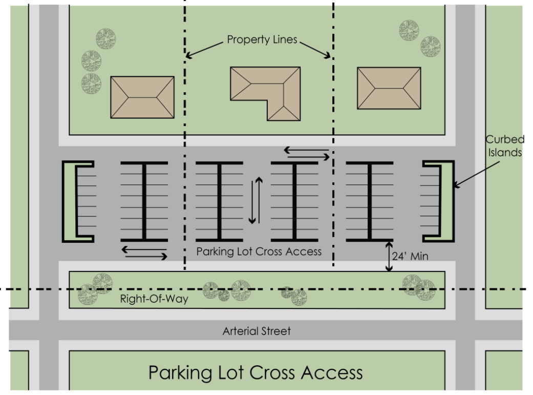 Where shared parking between two or more lots is utilized, provisions for pedestrian connection(s) must be provided.