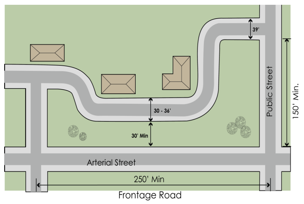 Curbs. A raised or rolled concrete curb a least six inches in height shall be installed with the construction of all driveways, parking lots, access lanes and other vehicle maneuvering areas to prevent motor vehicle conflicts with abutting landscape areas, sidewalks, streets, buildings or adjoining property.
