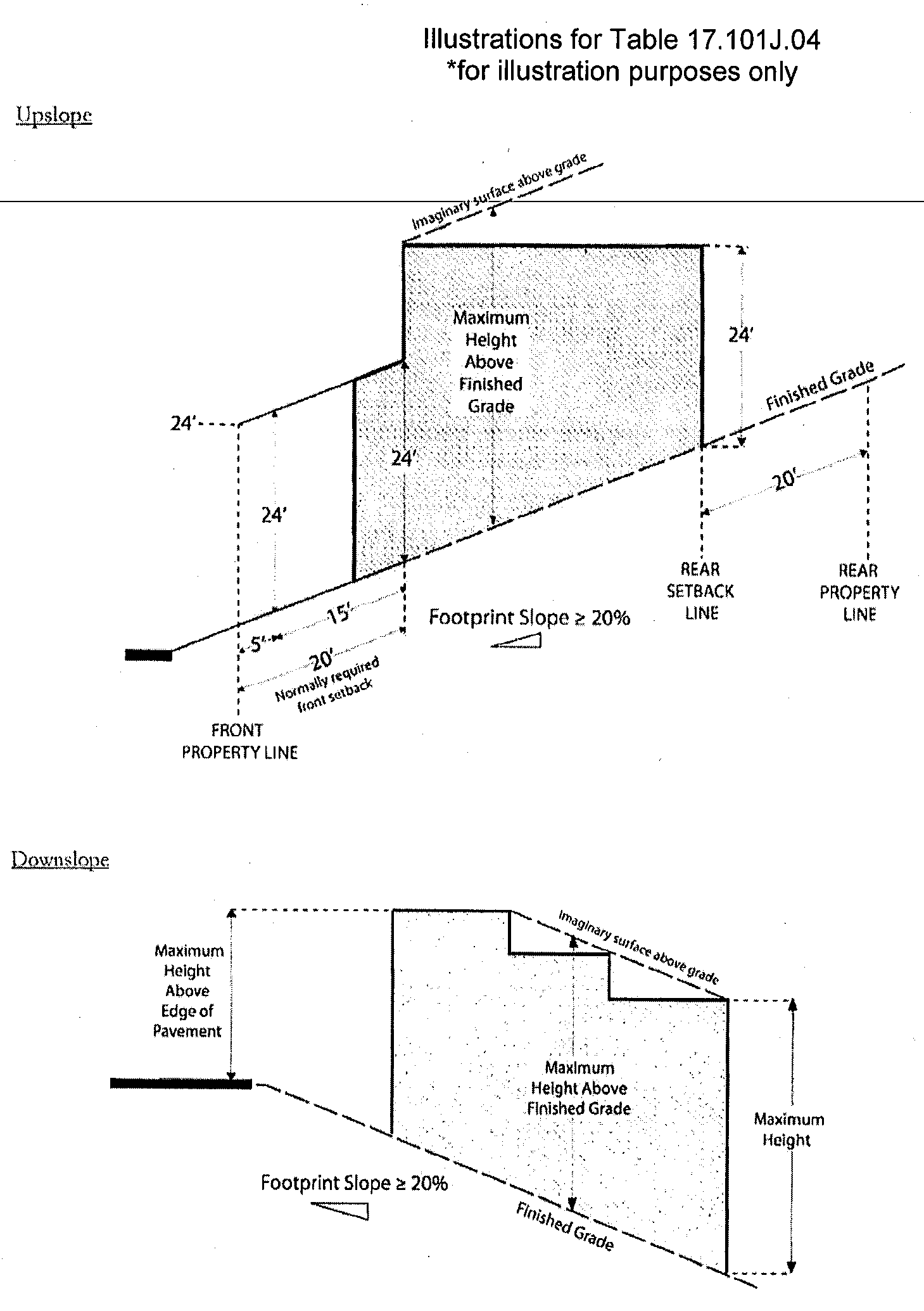 Table 17.101J.04 Height Regulations for all Lots with a Footprint Slope of >20%, Terraced, or Split