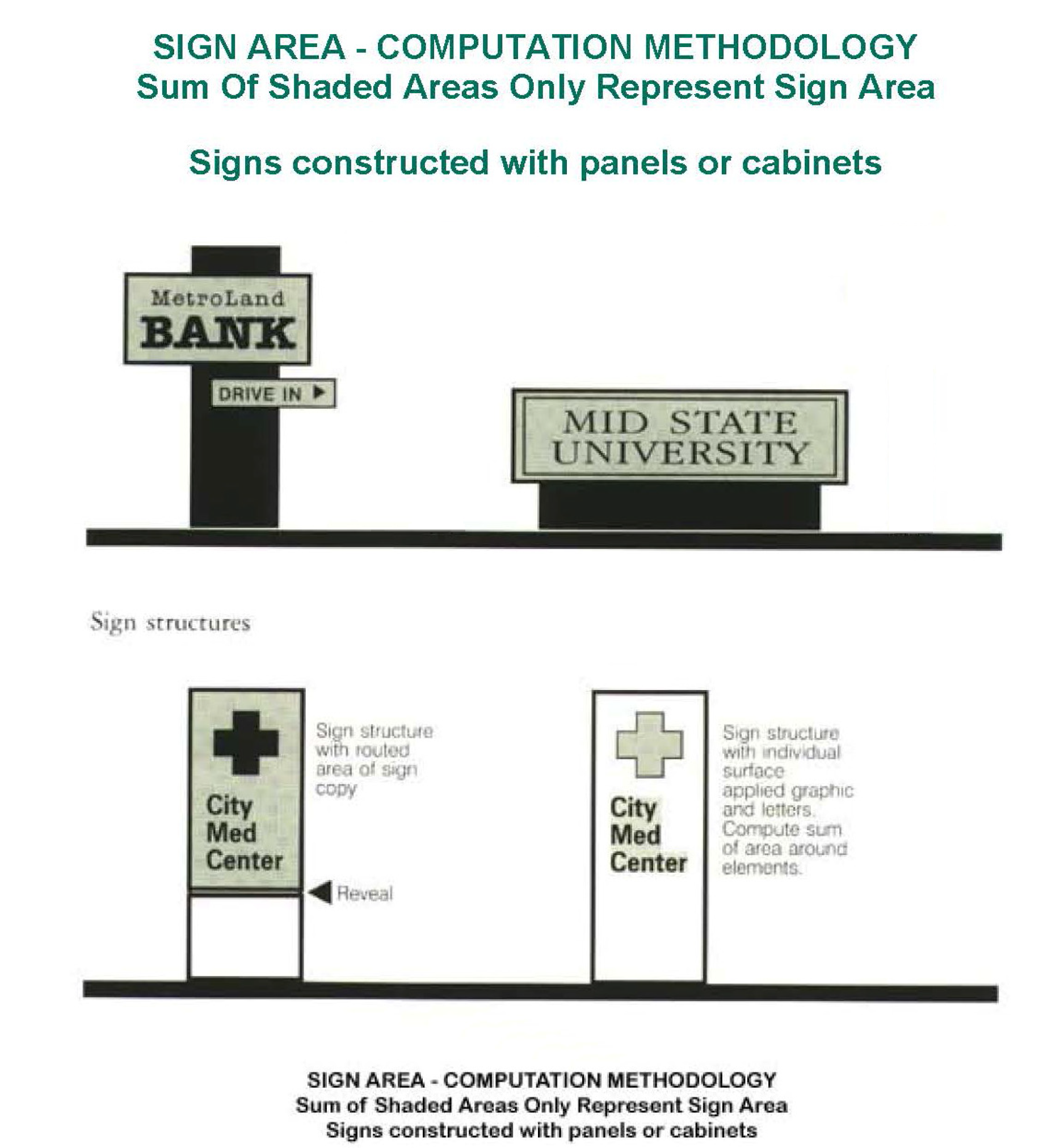 See Figure 1 below for graphical computation methods only to measure the area per sign face.