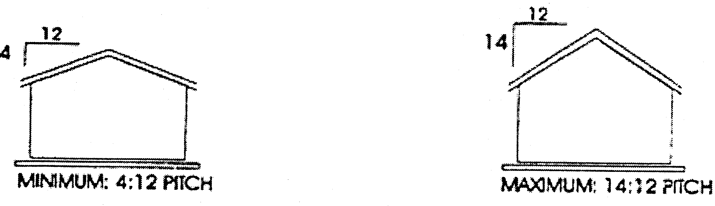 For single-family residential dwellings and accessory buildings in the single-family residential districts, the minimum permit ed pitch for a pitched roof is 4:12 (rise to run) and the maximum permit ed pitch is 14:12 (rise to run). The planning and zoning commission may approve a pitched roof minimum of 3:12 as a special design exception subject to the development plan review criteria in section 63-56(1) including, but not limited to, sections 63-56(1)(a)(2), 63-56(1)(b), and 63-56(1)(c)(1), (2), (5), (6), and (7). Except for a flat roof usable area (defined below), it shall be unlawful to construct or maintain a pitched roof system consisting of tar paper or felt without approved exterior shingles, tiles or metal covering. Parapets shall not to be utilized with pitched roofs except in conjunction with a flat roof usable area (defined below).
