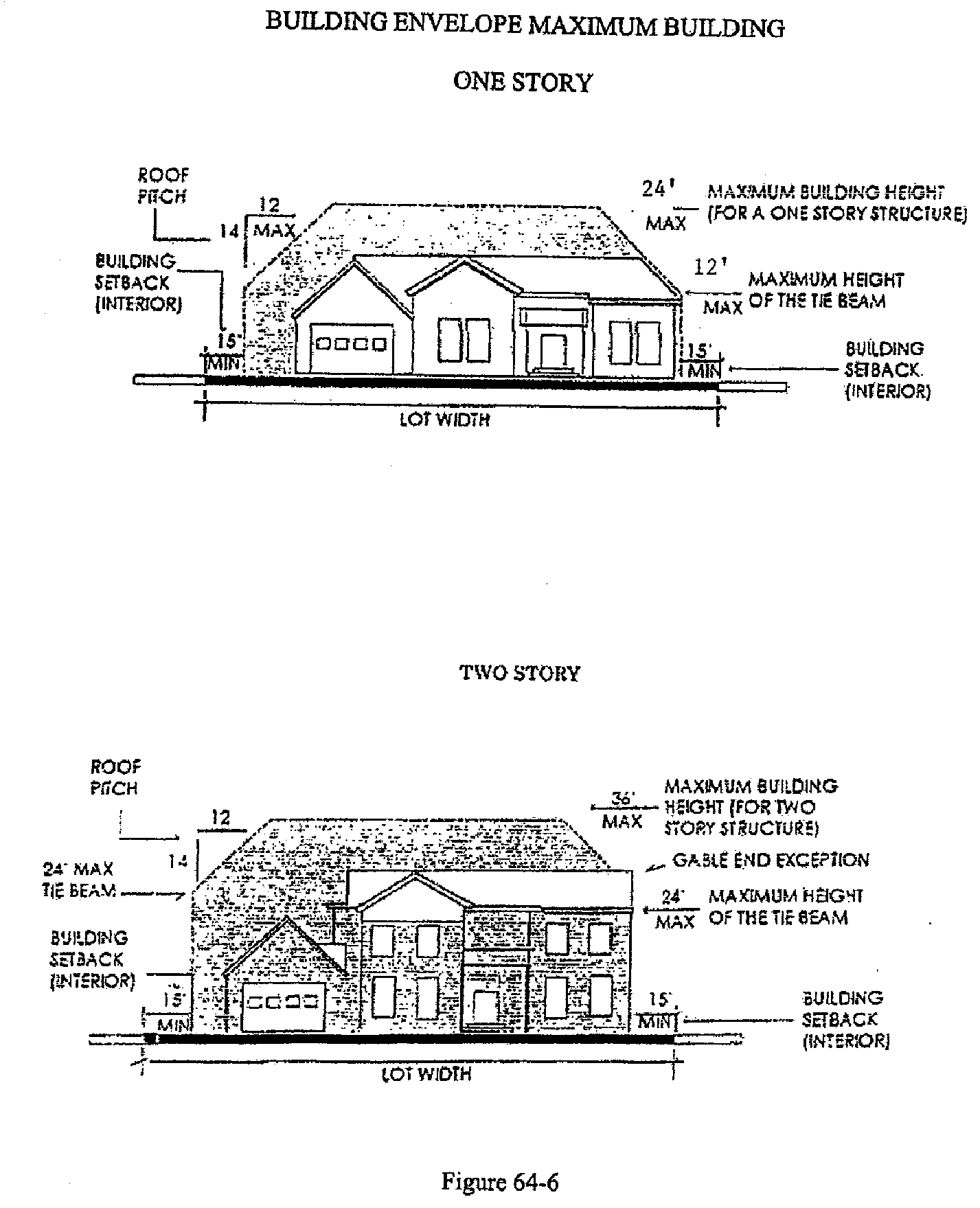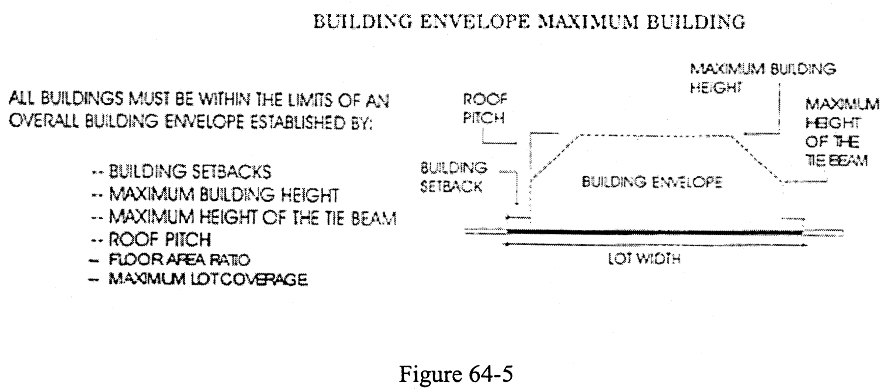 Building envelope. All single-family residential buildings must be within the limits of an overall building envelope established by yard setbacks, maximum building height, maximum height of the tie beam, maximum lot coverage, floor area ratio, and roof pitch. The building envelope permitted within the town is shown graphically as follows: