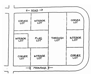 Through (double frontage) lots. Double frontage lots, unless approved by the Public Works Director, shall be prohibited except where essential to provide separation of residential development from traffic arteries (arterial or collector streets) or to overcome specific disadvantage associated with topography, orientation, and property size.
