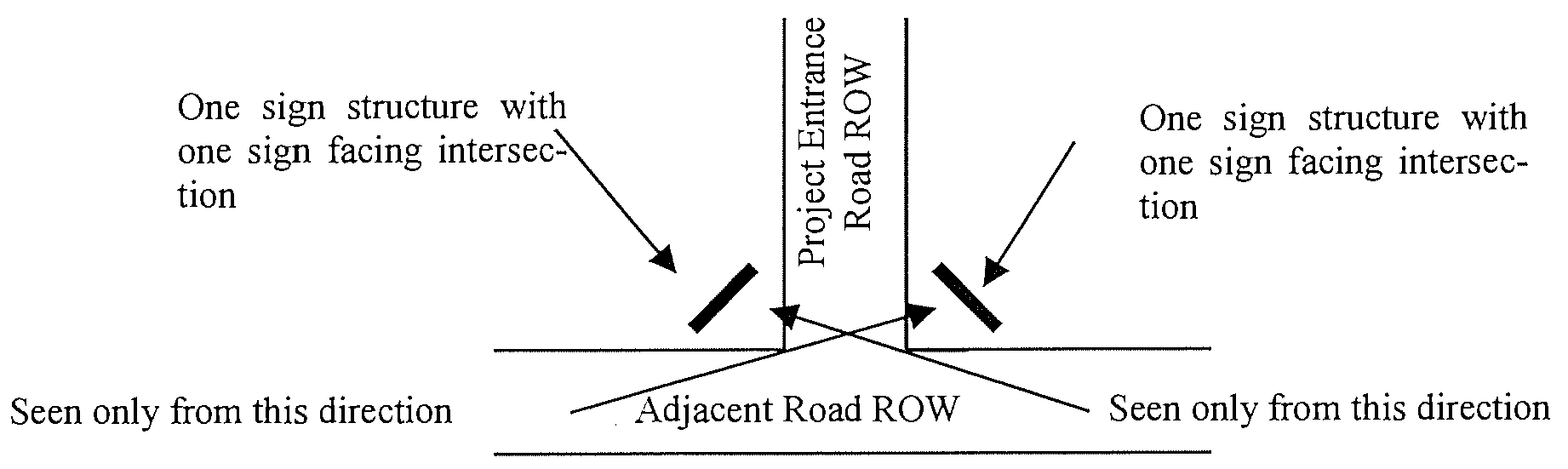 Within the area between a street and the minimum street-side setback required for the zoning district, additional signs may be located within 3 feet of driveways that provide access into or from the property. There shall be no more than 2 such signs per driveway and each such sign shall not exceed 4 square feet in sign area nor be more than 3 feet in height.