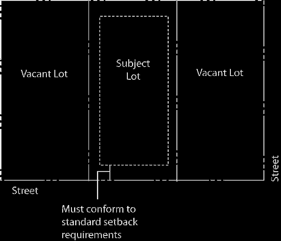 If the subject lot is a corner lot that only adjoins a vacant lot or an interior lot that adjoins two vacant lots, then the required front setback must be the front setback required by section 14.04.010 or 14.04.020 of this chapter.