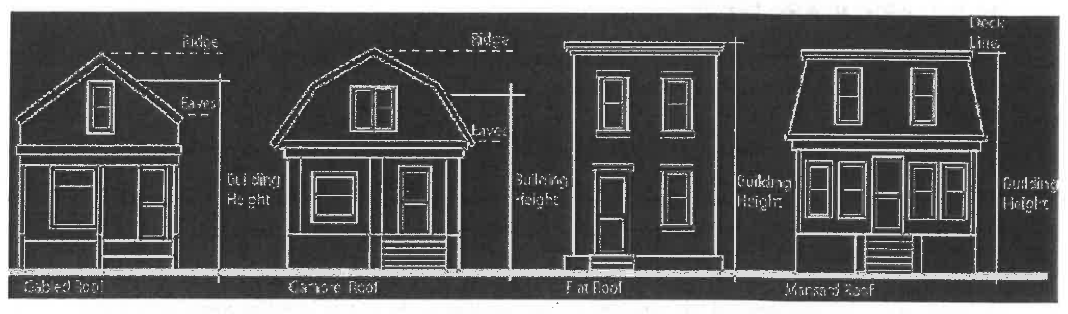 Building Height: Building height is to be measured from the average elevation of the finished grade adjoining the front building line to: