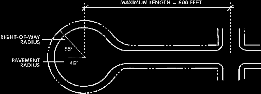 Cul-de-sac islands are prohibited, due to the difficulty cul-de-sac islands create for snow removal and emergency services.