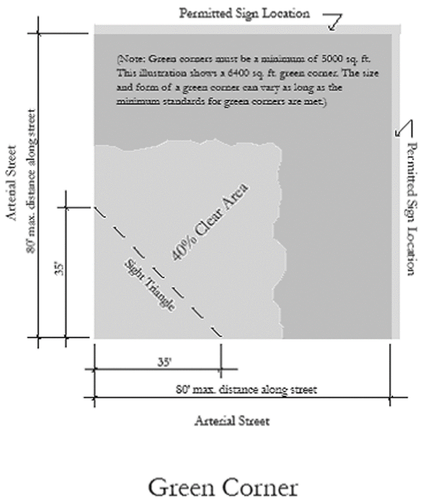 No off-street parking between the building and the street;