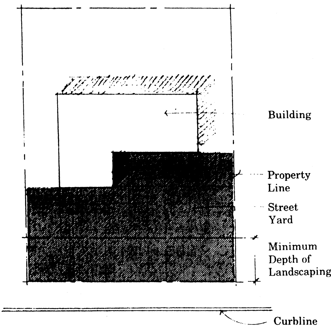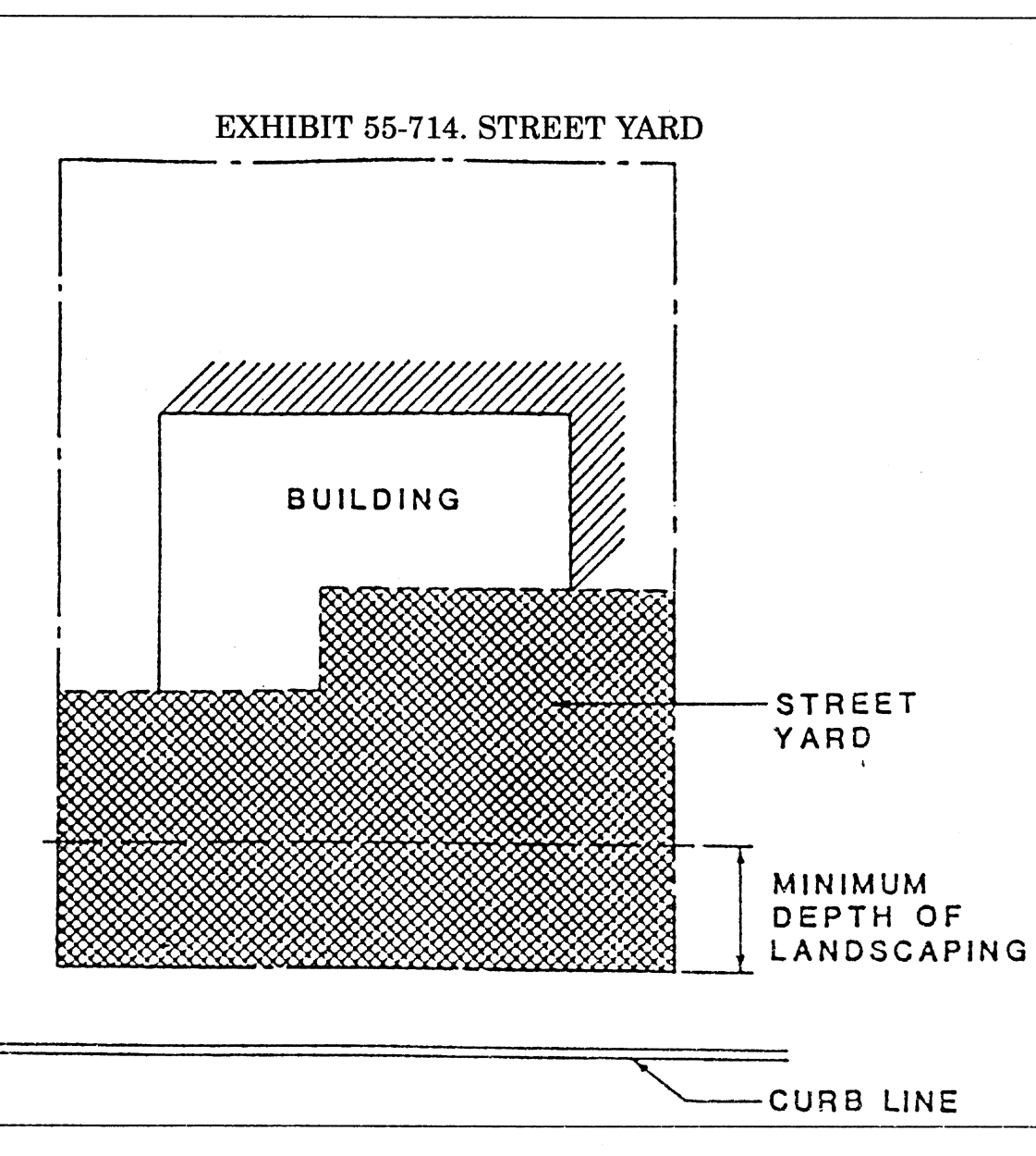 Landscaping shall be provided adjacent to each street property line and within street yards as set forth in Table 55-715. (See the drawings on the page following the table.)
