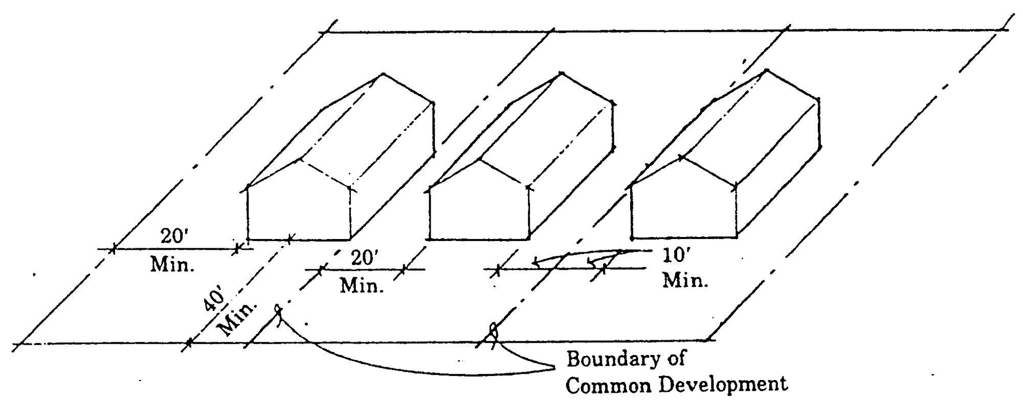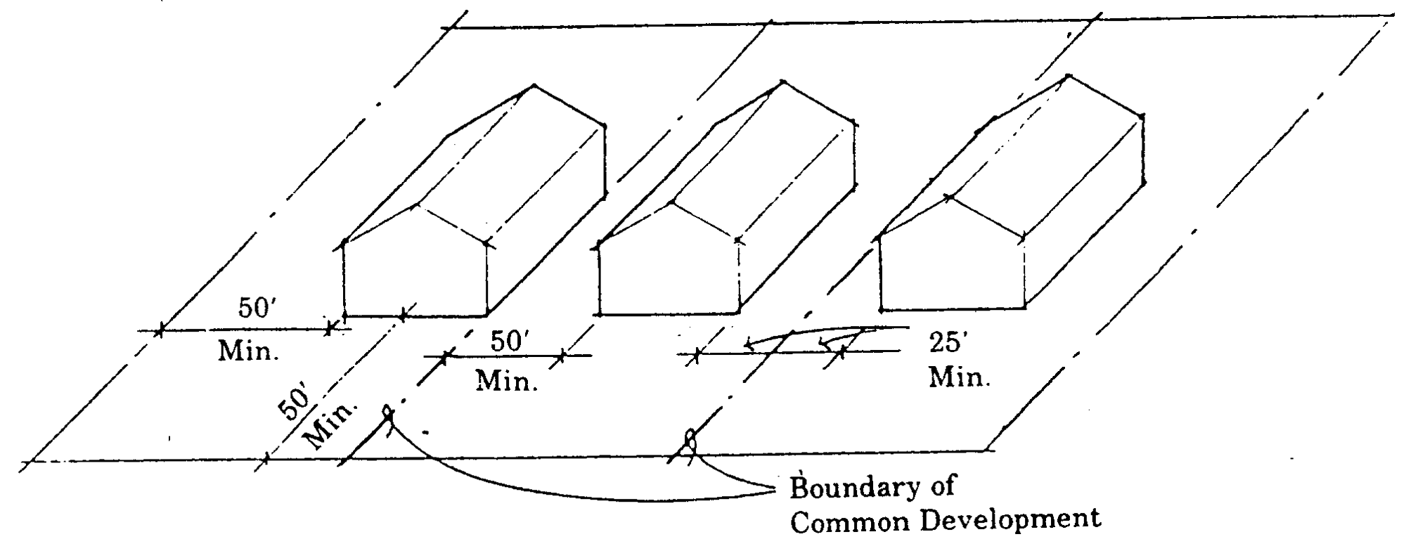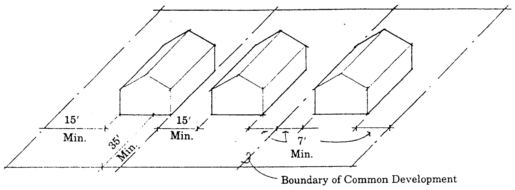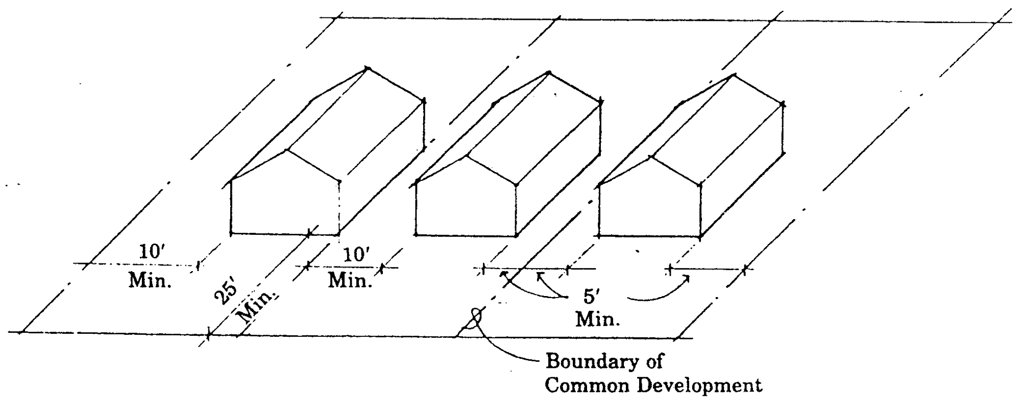 The normal side yard setback requirements must be maintained adjacent to any lot with an existing structure not within the common development, or not otherwise designated for zero lot line use.
