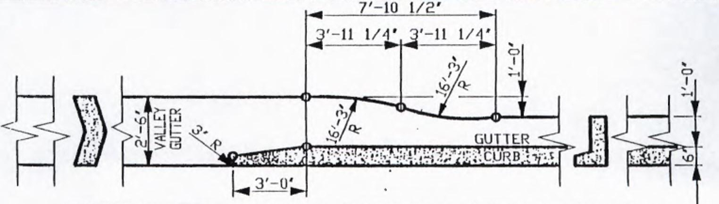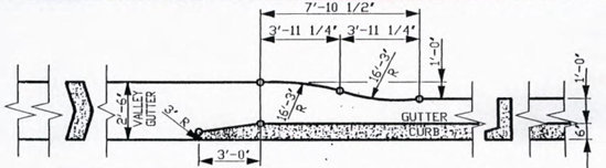 Transition from 2'- 6" Valley Gutter to 1'- 6" Curb and Gutter