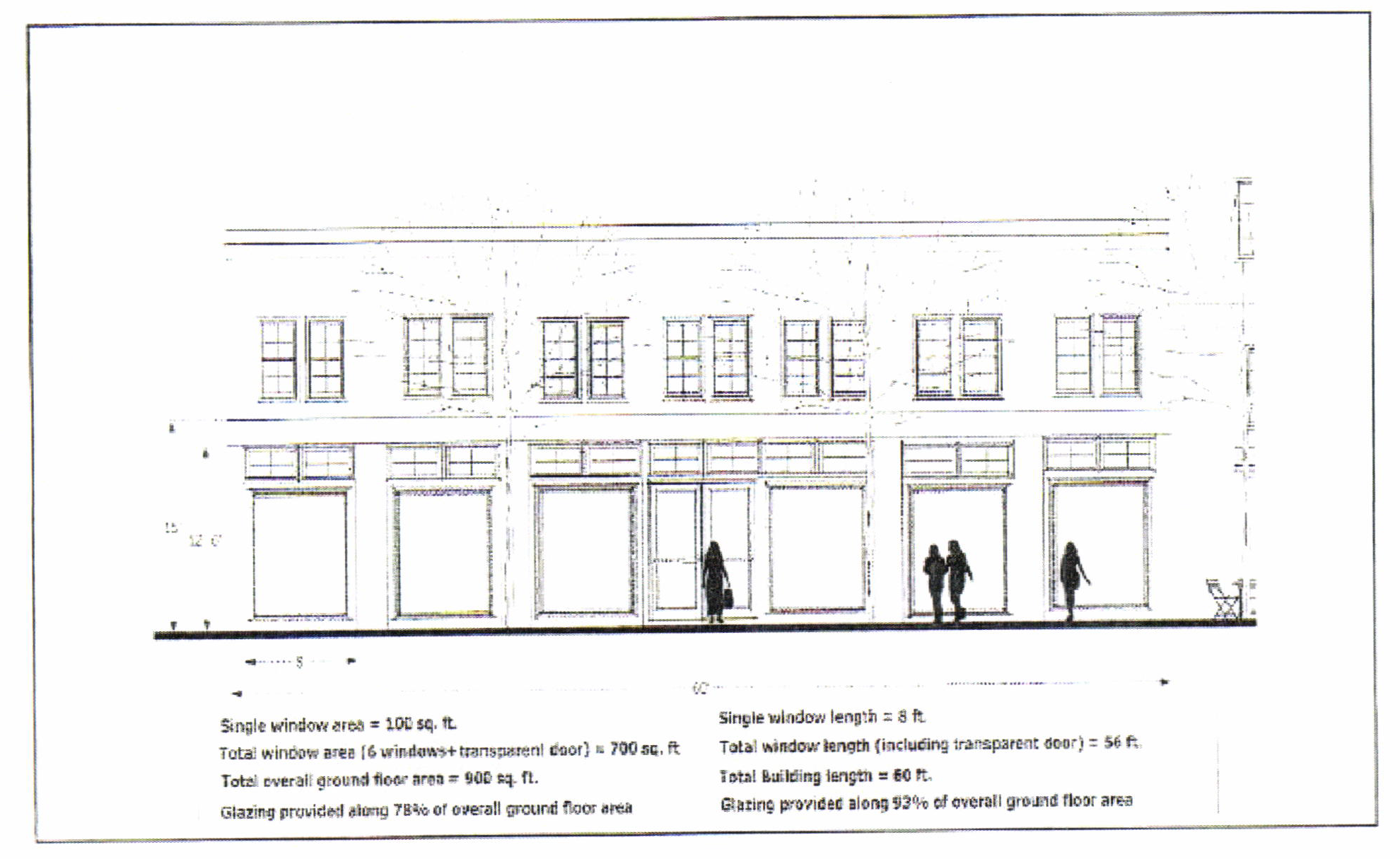 As shown on Figure 10A-27-07, new mixed use buildings with ground floor commercial uses shall provide transparent window and door glazing on that together cover a minimum of: