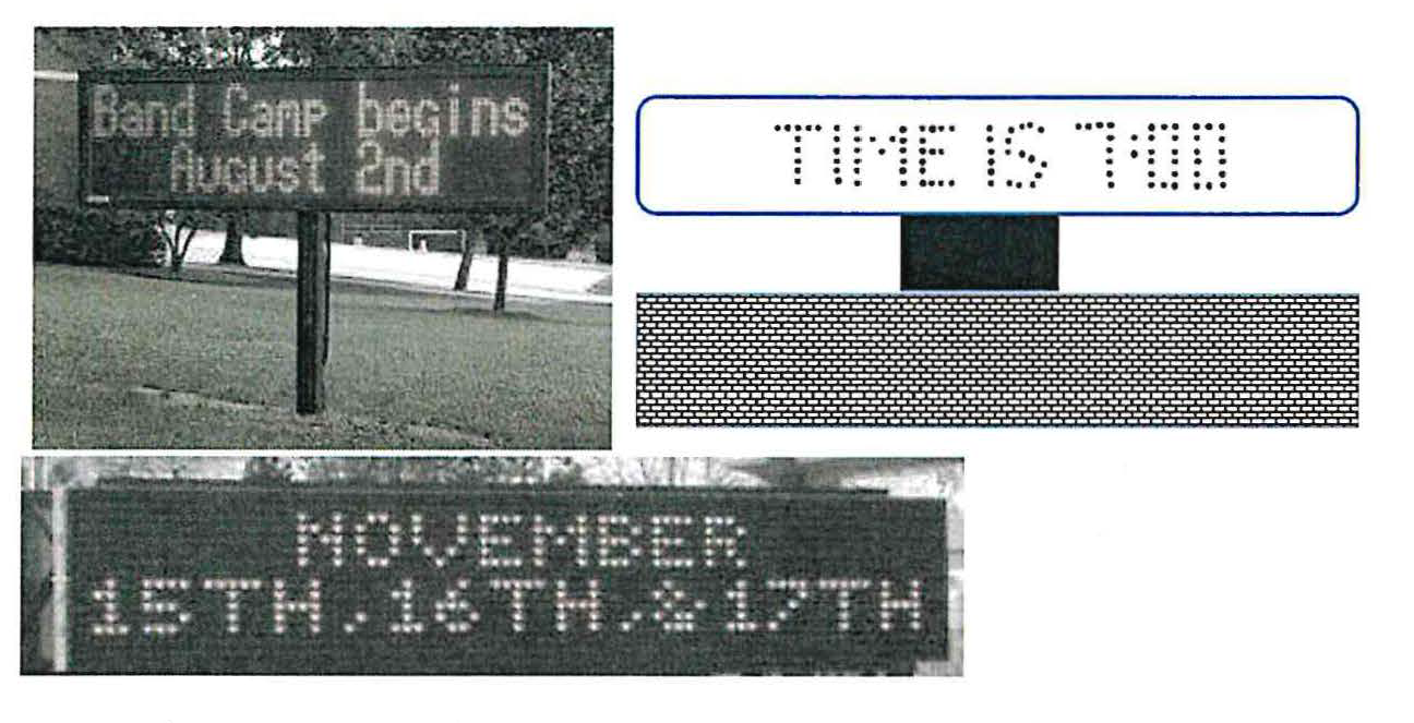 Electronic Reader Board. Means a sign that uses electronic illumination, whether constant or by scrolling, for messages and is used either singularly or in conjunction with another sign. Electronic reader boards are commonly used for information such as date, time, weather, temperature, and news.