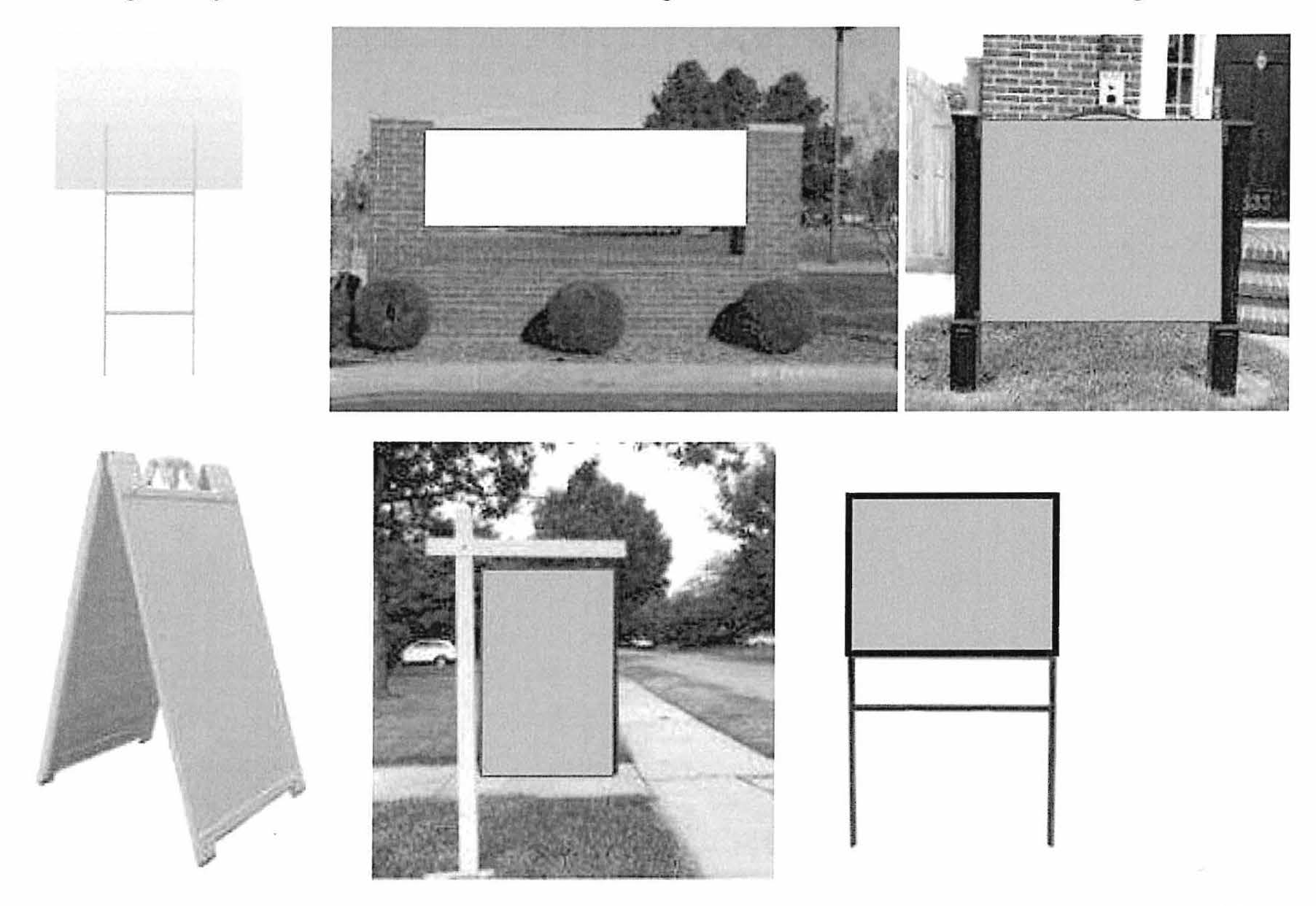 Electronic reader boards, pole signs, promotional signs, master signs, portable signs, ornamental signs, and billboards are not allowed in the R-1 zoning district.