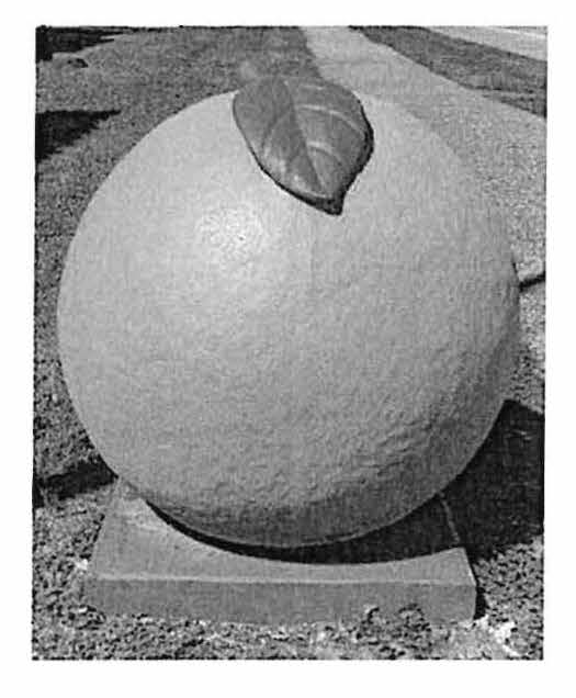 Ornamental Sign. Means a sign that is constructed of concrete, wood, or fiberglass and shaped to resemble an orange, which is approximately thirty (30) inches tall and thirty (30) inches wide and weighs approximately one thousand (1,000) pounds. Ornamental sign does not include signs constructed of concrete and shaped to resemble an orange that is less than six hundred (600) pounds.