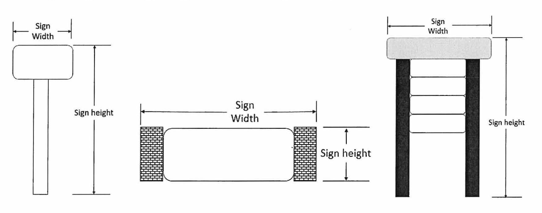 Sign Size. Means the square footage (maximum height above grade and maximum width) of a sign including the sign face, supporting structures and any clear space underneath the sign face.