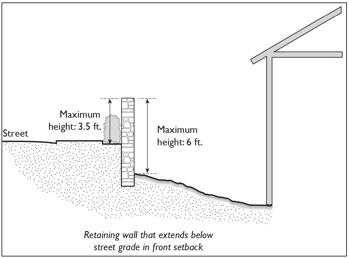 Wing wall. An architectural feature in excess of six (6) feet in height which is a continuation of a building wall projecting beyond the exterior walls of a building.