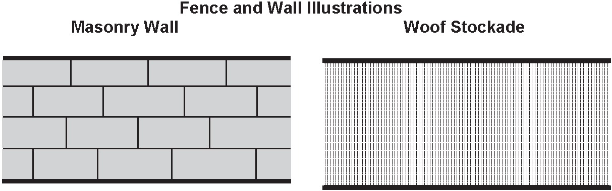 Berms may be used to compensate for fences. An eight-foot-high opaque structure can be a combination of berm and fence to total eight feet.