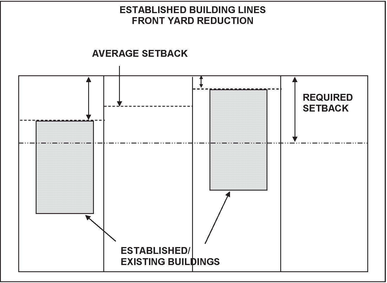 Setbacks - Partially Developed Areas. Where the majority of lots in a block fronting on the same side of a street between two intersecting streets are lawfully occupied with buildings having greater or lesser front yard depth than required by these regulations, no building hereafter erected or altered shall vary in the front yard setback by more than five feet from the average depth of said existing front yard setbacks without written approval of contiguous property owners. However, in no case shall setbacks be less than 15 feet.