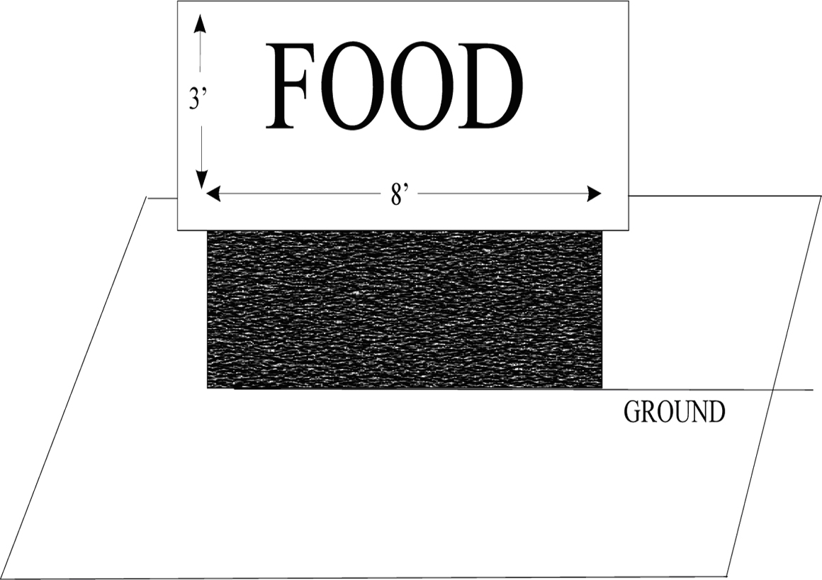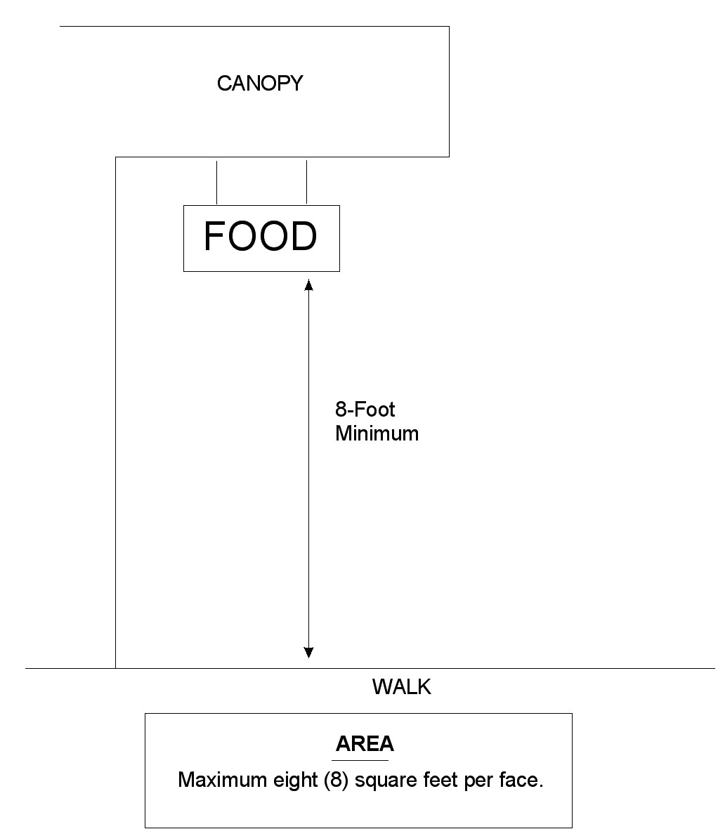 Farmers' market signs. City approved farmers' markets are allowed two on-site signs with a maximum area of thirty-two (32) square feet each and two off-site signs with a maximum area of twelve (12) square feet with permission from the property owner. Each vendor may display one temporary sign with a maximum area of twenty (20) square feet. No sign shall be located in the public right-of-way.