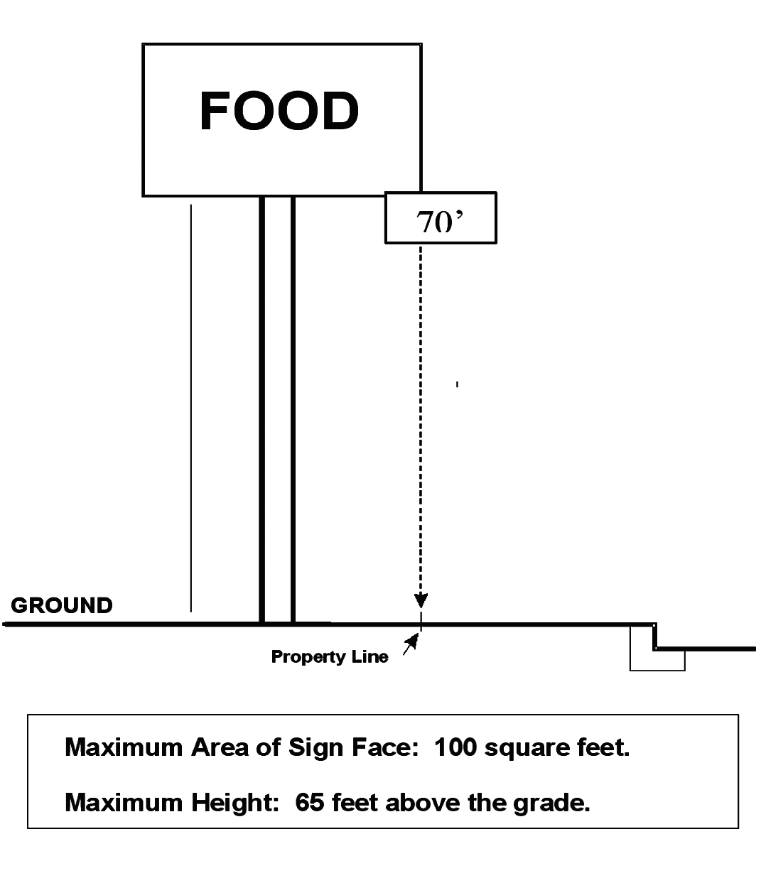 Single Use Parcel: One hundred (100) square feet maximum of total sign area for parcels with street frontage less than one hundred (100) linear feet measured from the longest single street frontage. For parcels equal to or greater than one hundred (100) linear feet of street frontage measured from the longest single street frontage: one additional square foot for every ten (10) linear feet of the longest single street frontage of one parcel subject to the other requirements of Chapter 17.78, with the ex- ception of an allowed increase of fifty (50) percent of permitted individual sign area described in Sections 17.78.100 through 17.78.400. This exception does not allow for the increase of accumulated sign area beyond those discussed previously. No combining of multiple parcel street frontages is allowed. Total sign area is not to exceed one hundred and fifty (150) square feet.