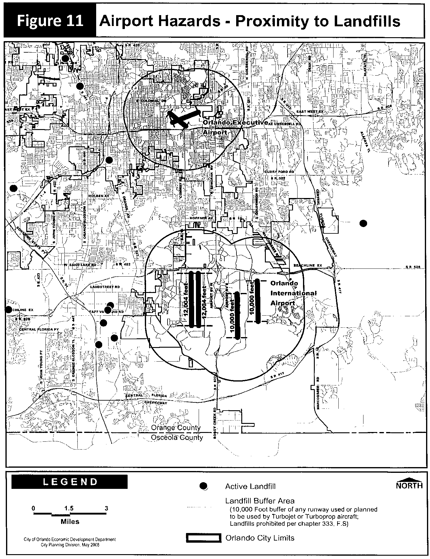 New landfills are prohibited within the areas shown on Figure 11-Airport Hazards: Proximity to Landfills.