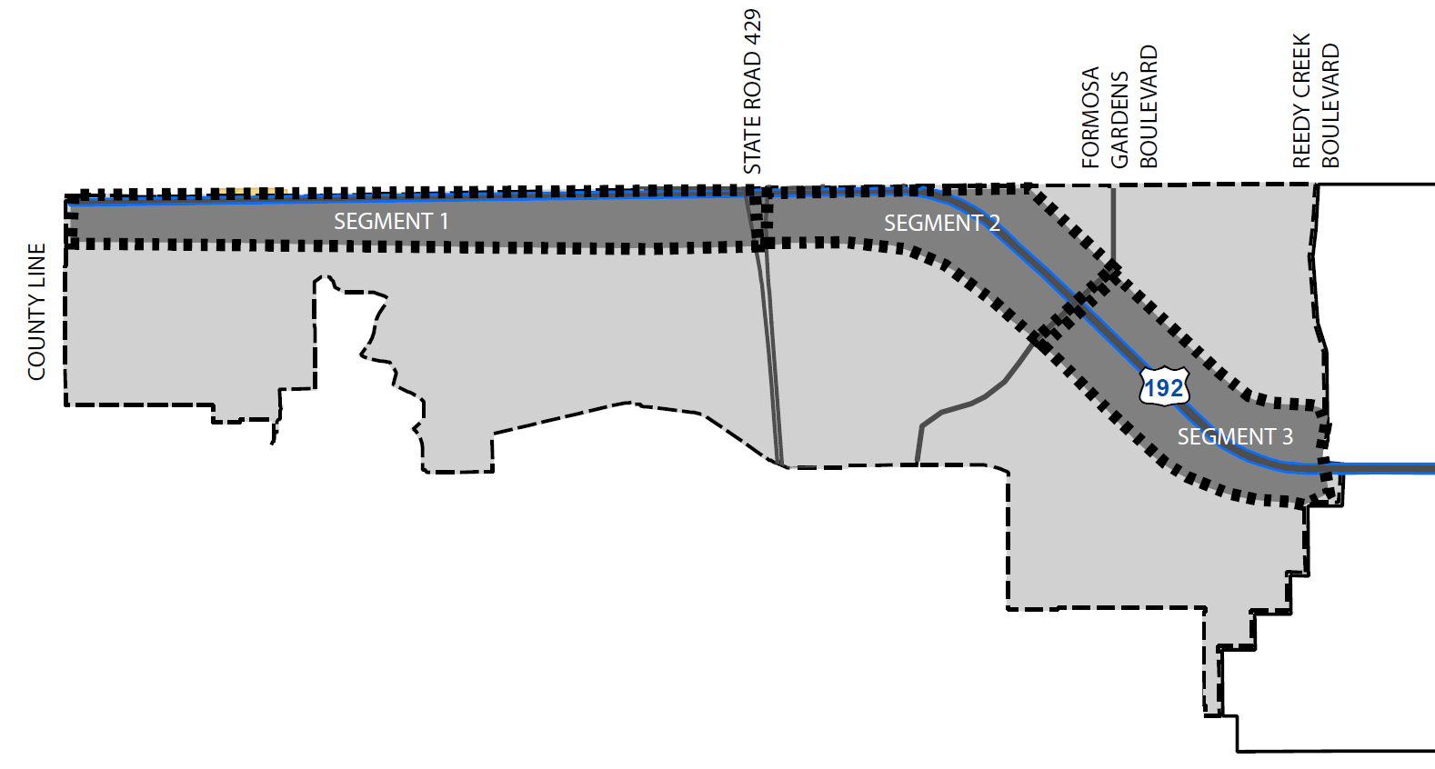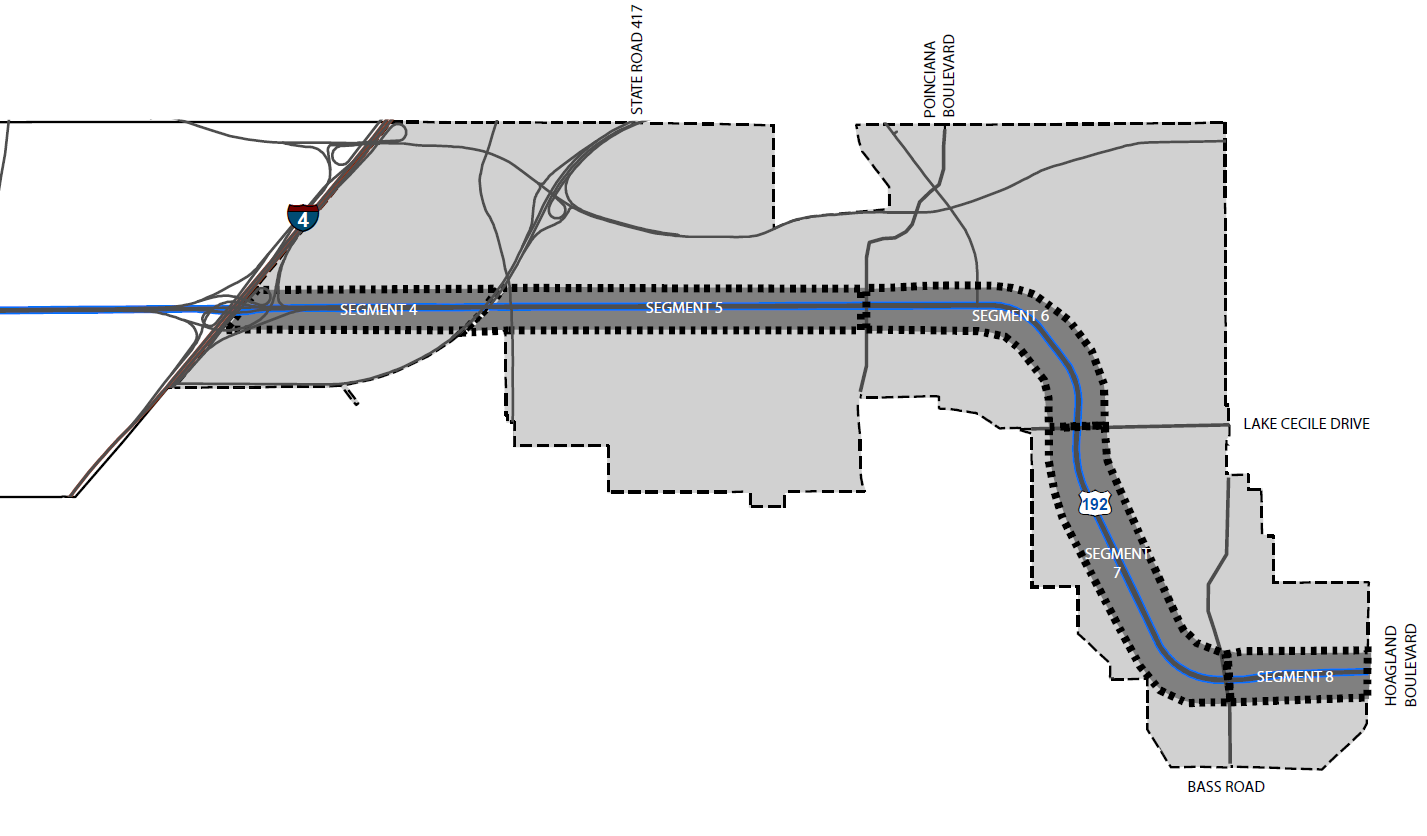 Location: Segments 1 through 5 of the West 192 Corridor, also defined as the West 192 Development Authority Corridor from the Osceola-Polk County line to the intersection with SR 535.