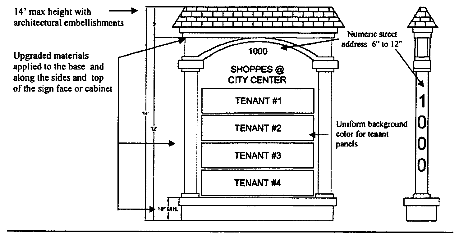 Figure 3.17.9.D.g.iii depicts the Parkway Monument Sign permitted within the U.S. Hwy 192 Public Realm.