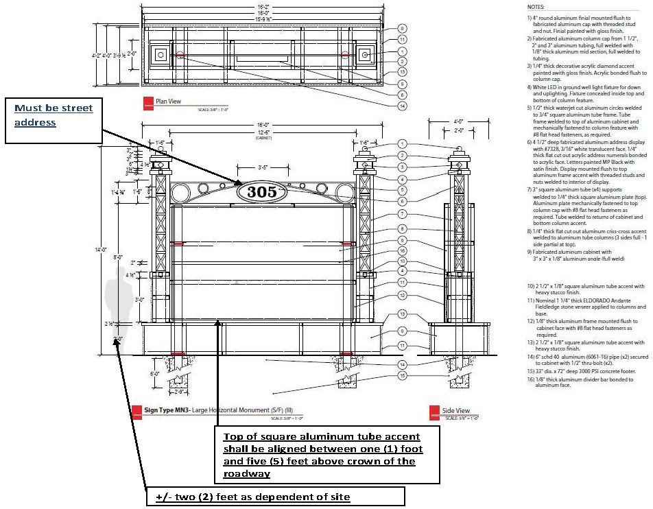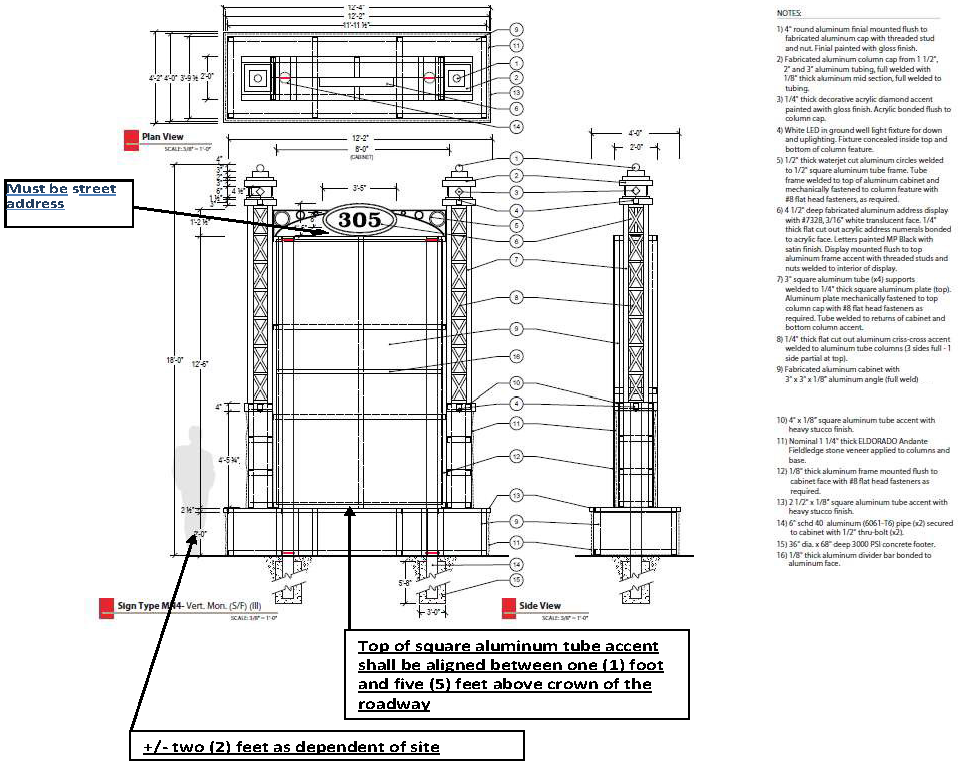 Specifications for all Monument Signs.