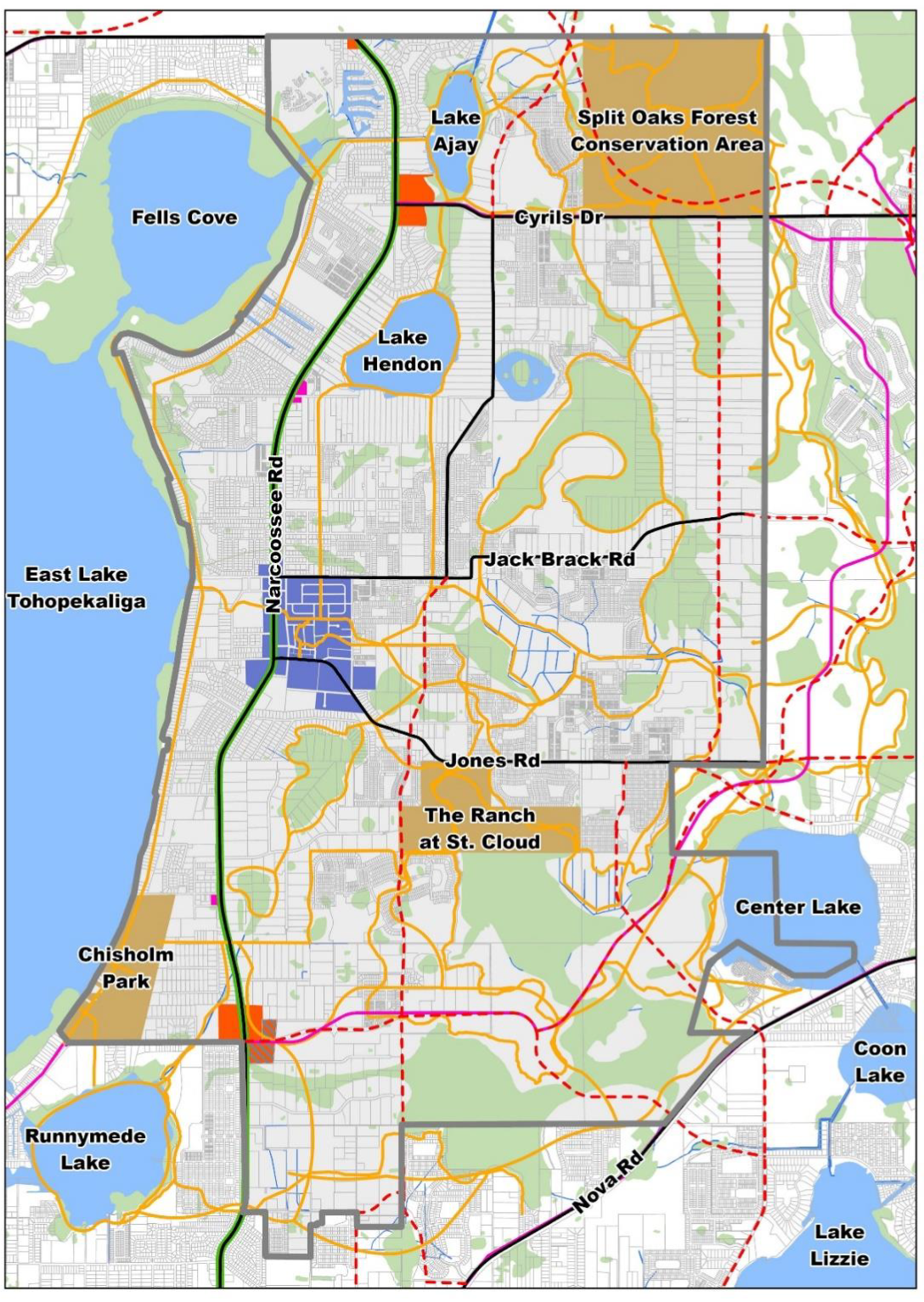 Agricultural Development and Conservation (AC): The AC District implements the Rural/Agricultural policies of the Osceola County Comprehensive Plan to allow agricultural areas to be developed in a manner consistent with the retention of agriculture, open space and rural character, and typically supports those land uses outside the Urban Growth Boundary. All properties within the AC district shall have a legal access to the property prior to any development activity or use request.