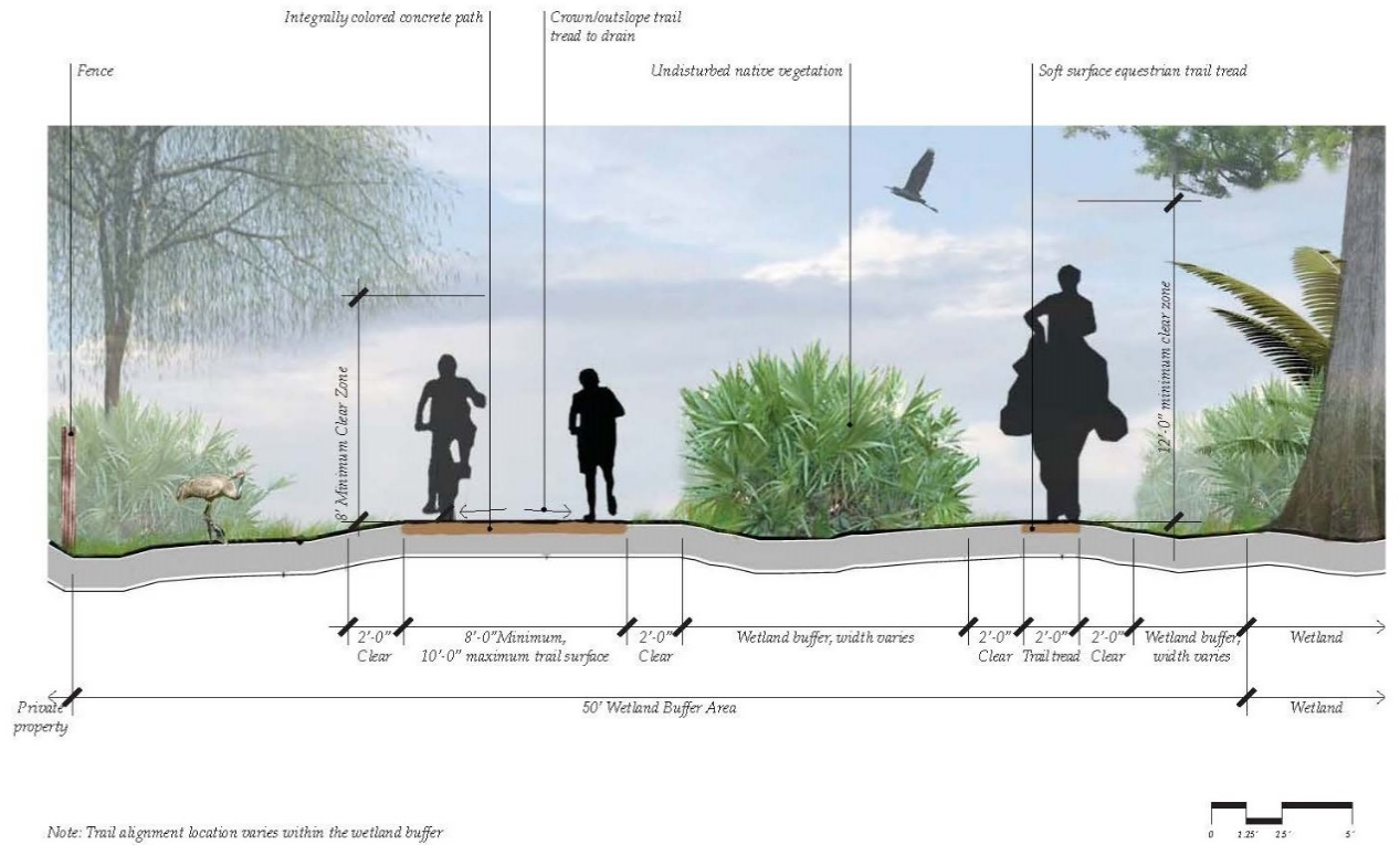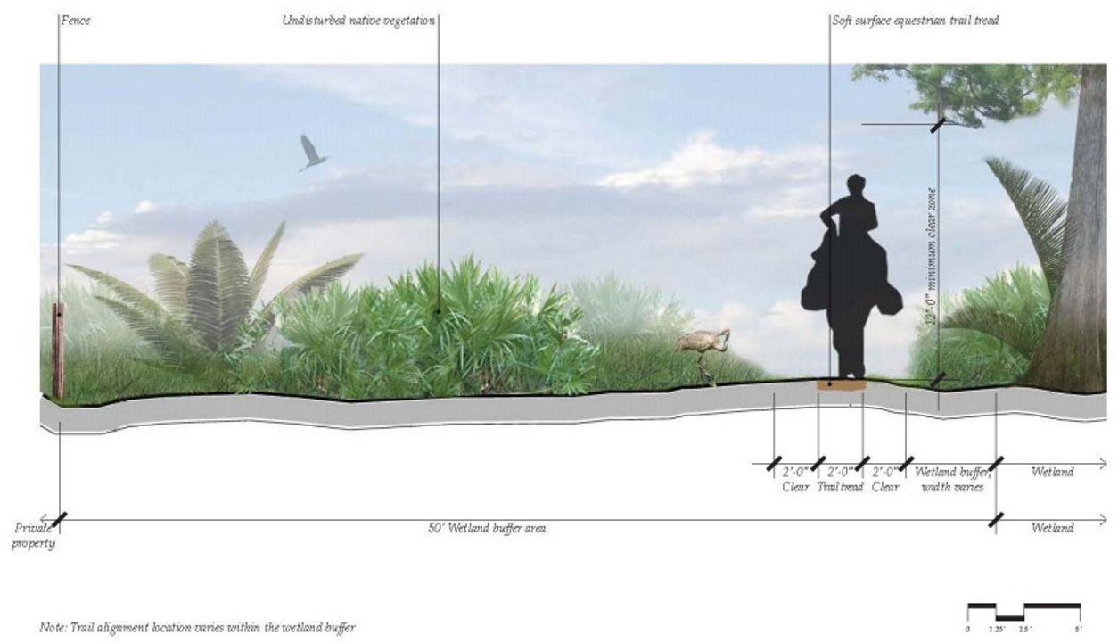 Any development is required to maintain buffers around wetlands. The required buffers shall remain in native vegetation or, if disturbed, enhanced with Florida Friendly plant material, with impervious surfaces limited to only that allowed herein. The mandatory buffers are as follows: