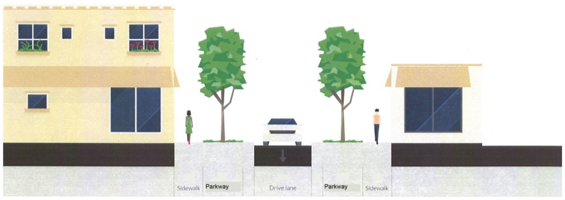 Common property line. For Placement within Residential Blocks, Utility Poles are strongly encouraged to be placed at the common property line of the Parcels that Abut the Public Rights-of-way.