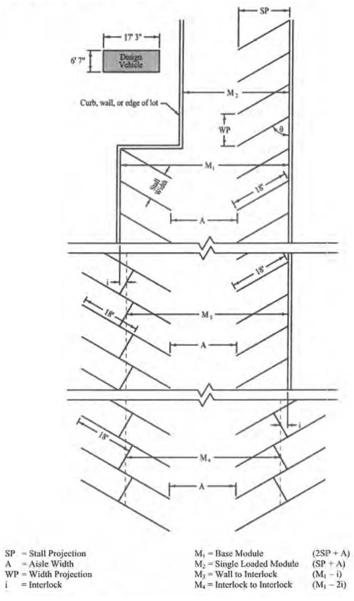 Note 4: For additional parking angles, refer to The Dimensions of Parking, ULI, NPA.