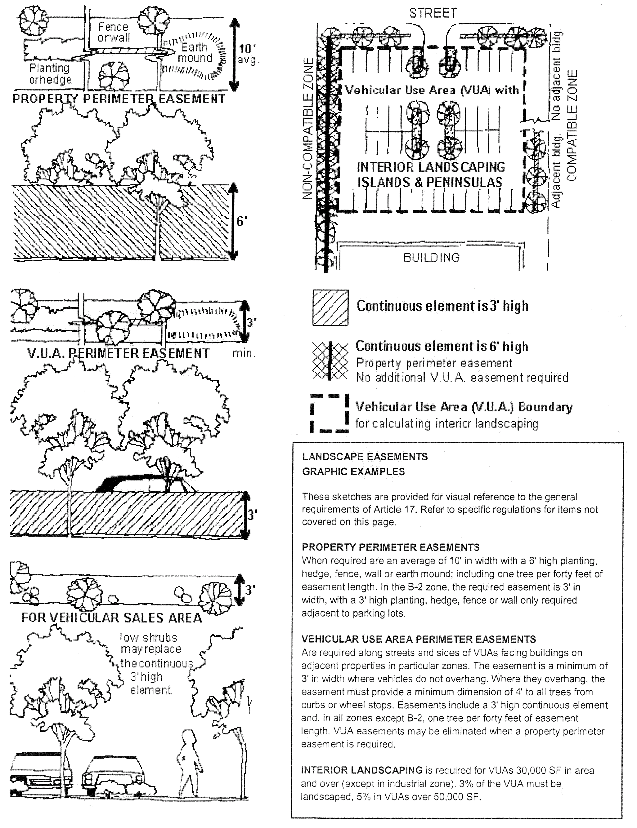 VEHICULAR USE AREA PERIMETER REQUIREMENTS (17.312 illustrated)