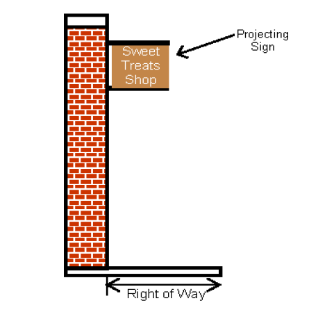 Projecting sign: A sign, other than a wall sign, that is affixed to any building or wall and whose leading edge extends more than twelve (12) inches beyond such building or wall. The leading edge may extend over the public right-of-way.