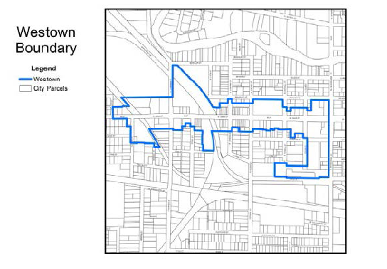 Downtown historic district boundary: As shown in the map.